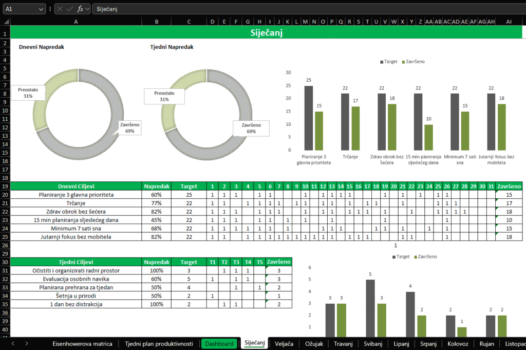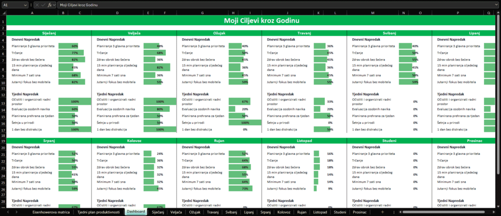 - Excel / Google Sheets tablice praćenje ciljeva kroz mjesece